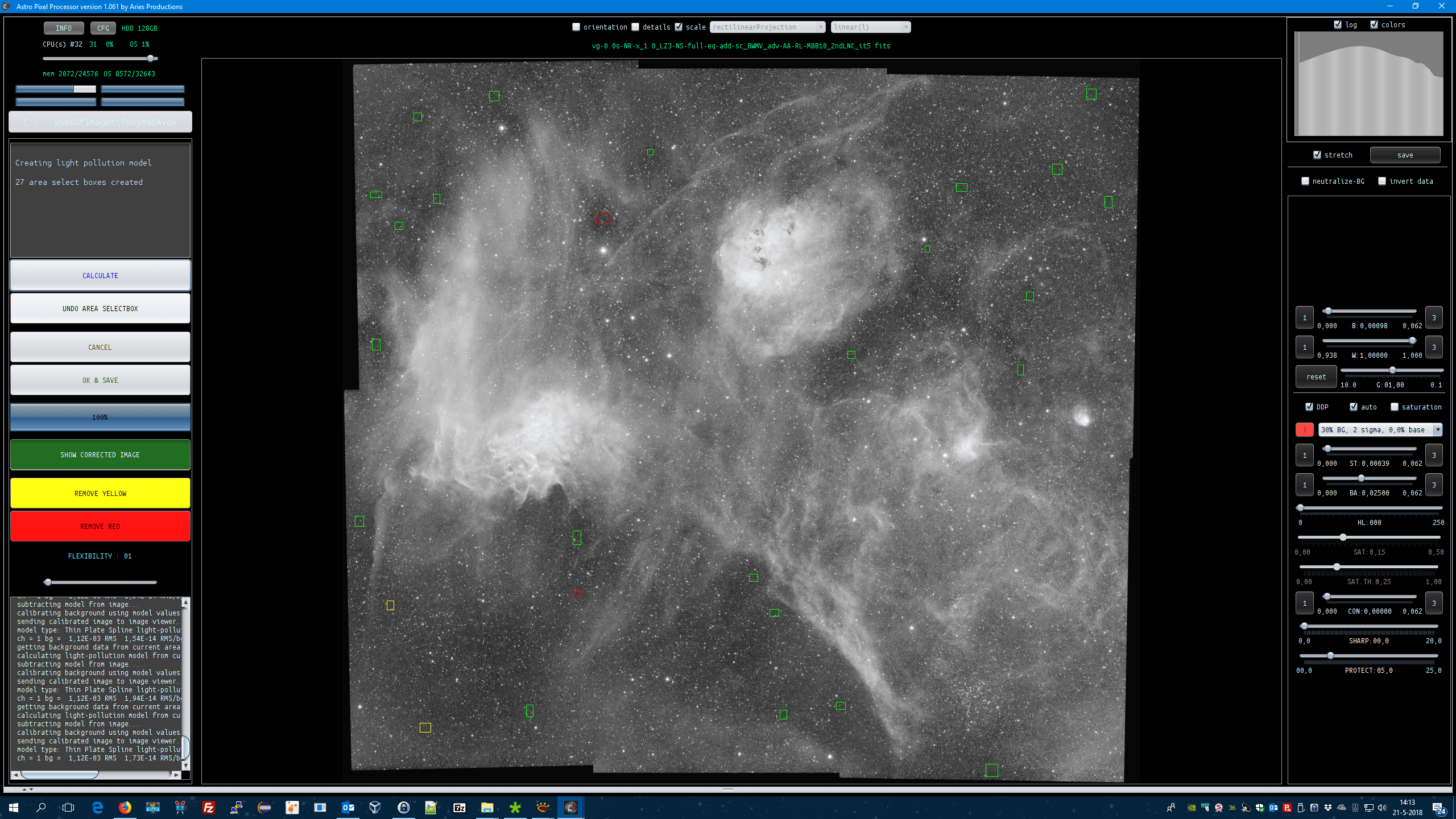 So the panels blend into each other well now, we only need to correct the final gradients that are left with the Remove Light Pollution tool. I first rotated the mosaic 90 degrees Counter Clock Wise to match your orientation: