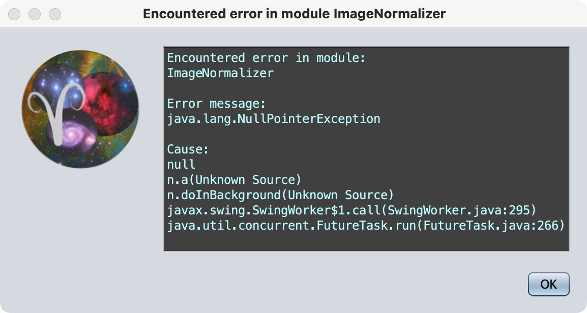 The data I was trying to process was 188 24Mb FITS files created by ASIair Pro using an ASI294MC (cooled.)