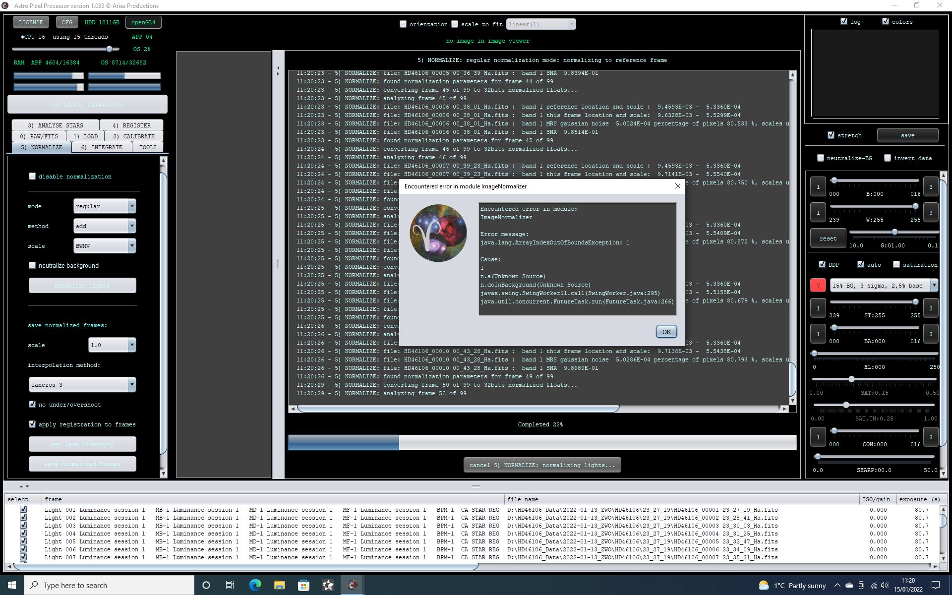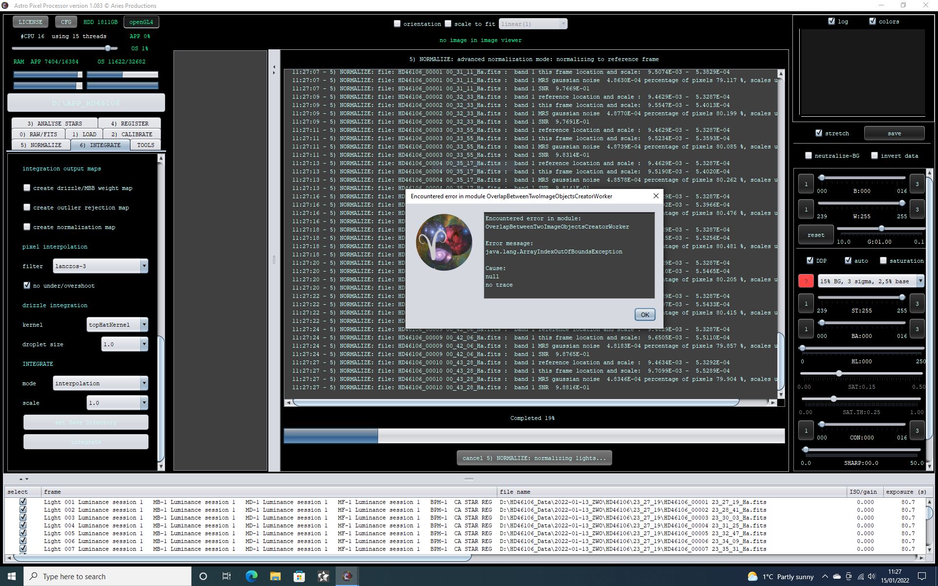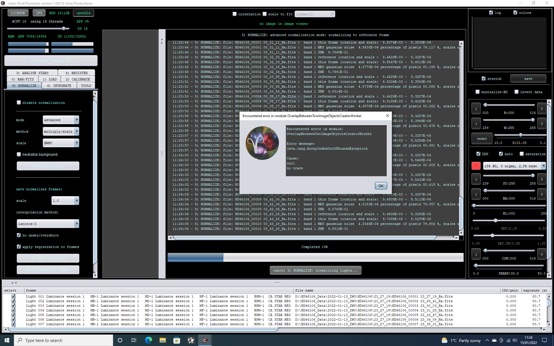 If I process the RGB and Mono data separately APP works ok but when I try to do both data sets together APP gets about 18% the way through Normalising and then fails.