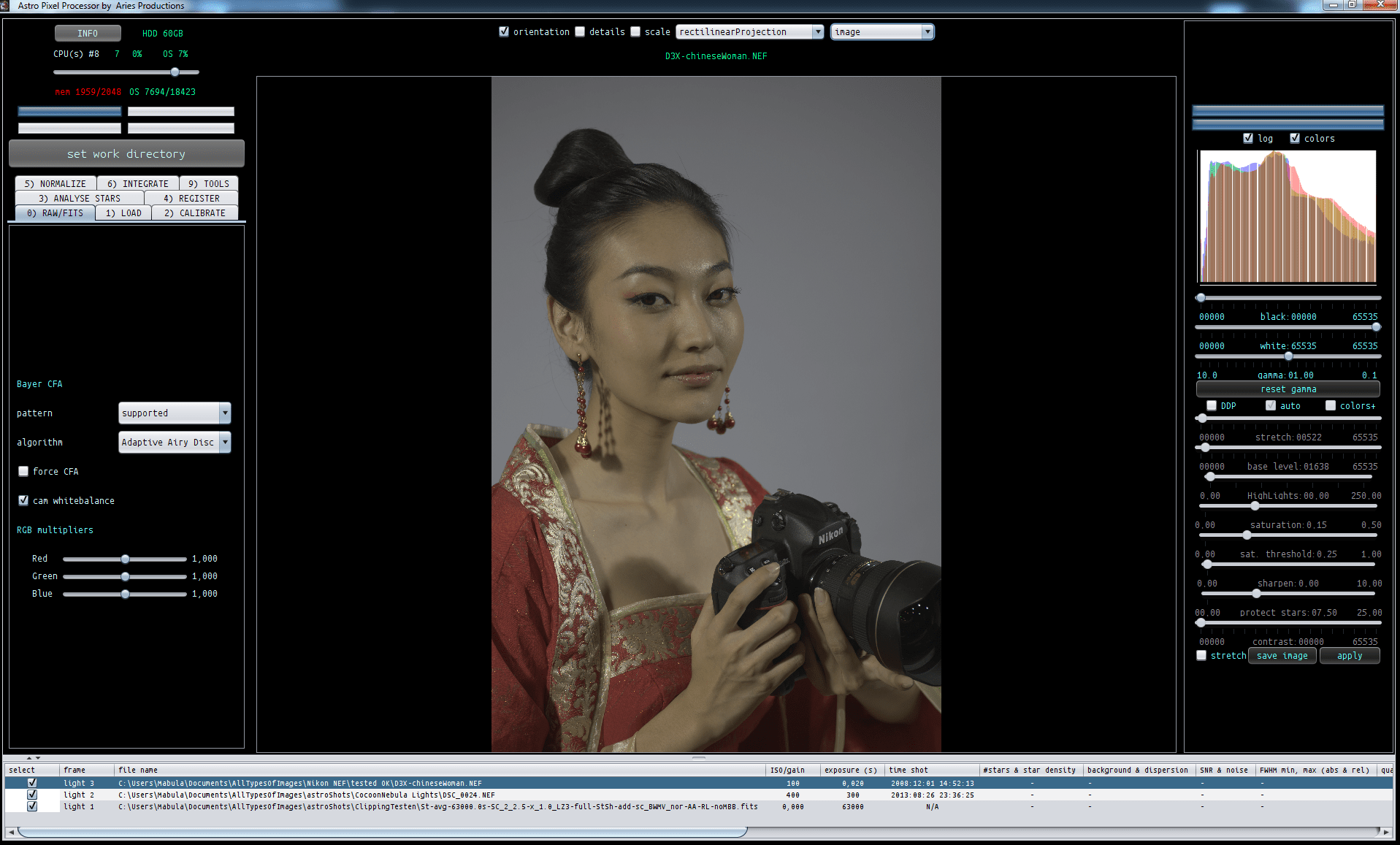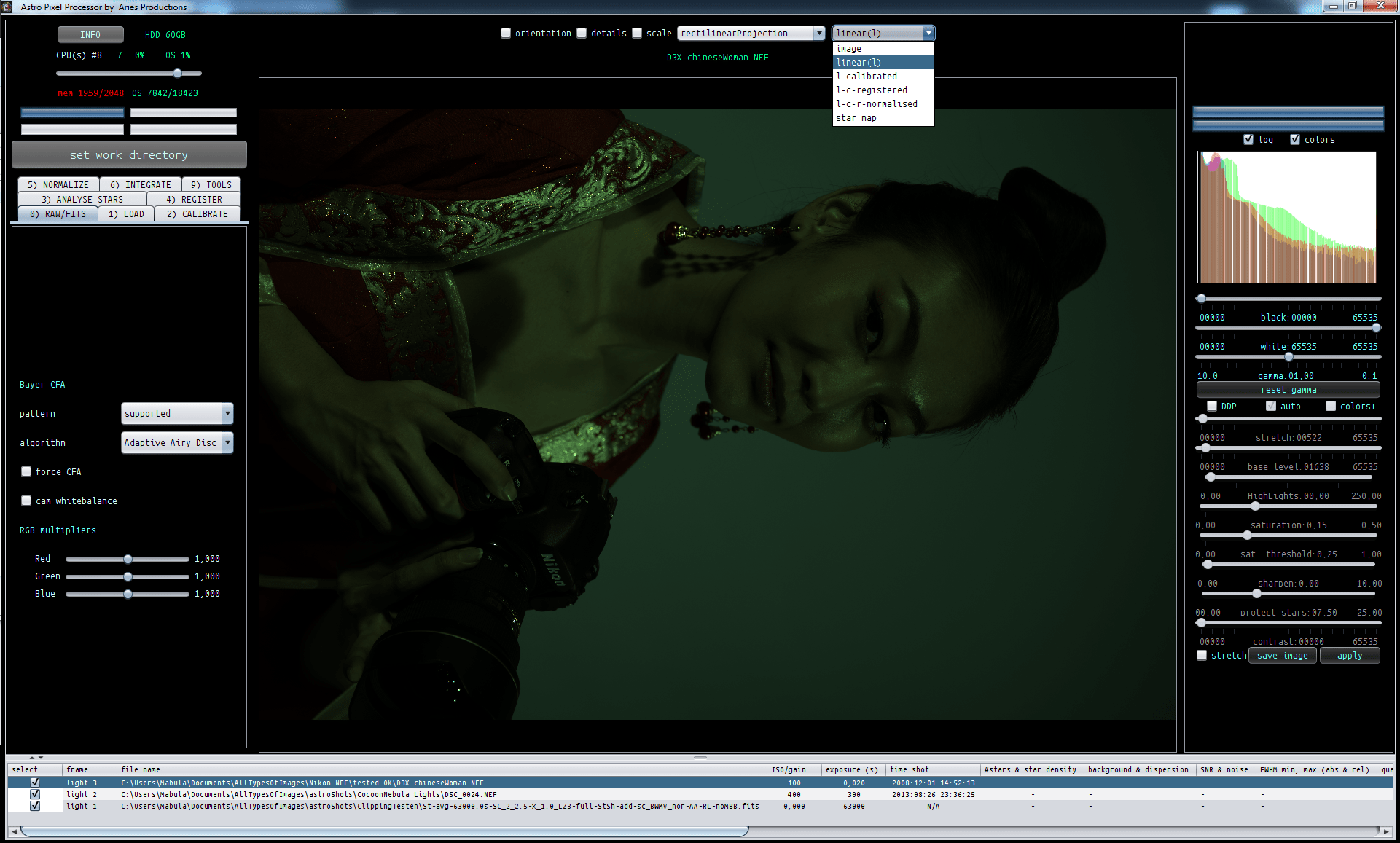 There are many things which I really like about APP, the main one being its user-friendly, intuitive, step-by-step interface, plus its dynamic preview screen that gives you instant feedback as you are processing your image or selecting a file, or viewing the effects of a calibration, and more. It's great for people like me.