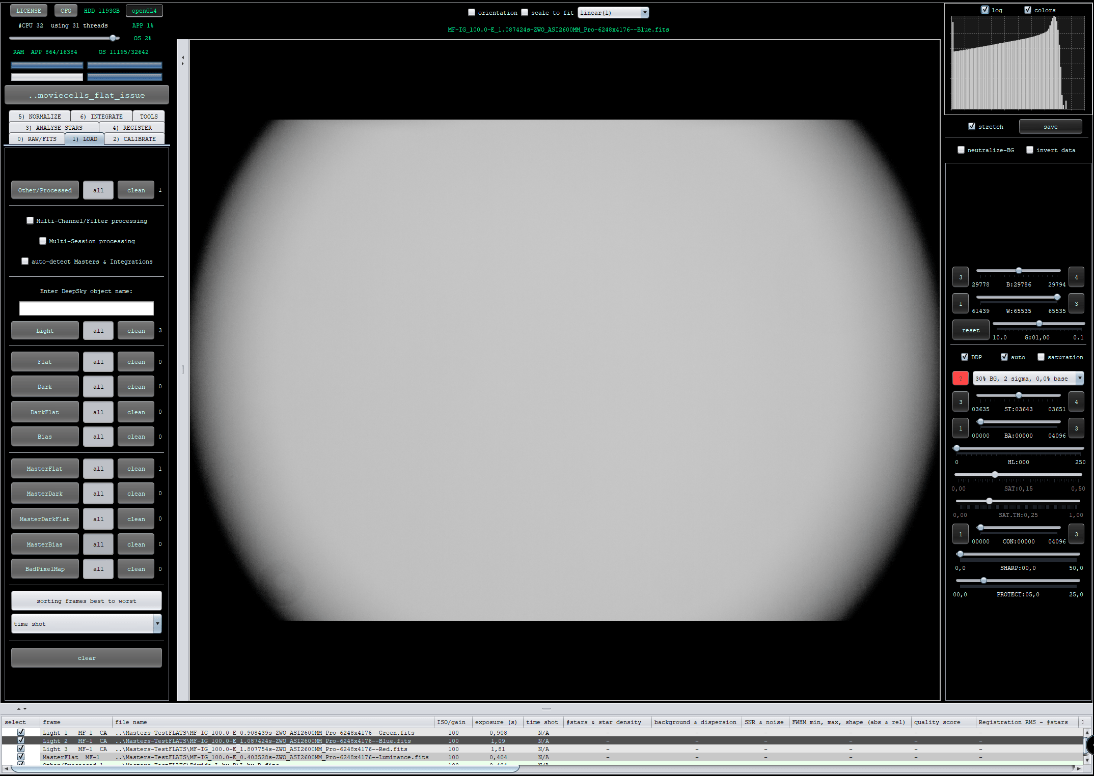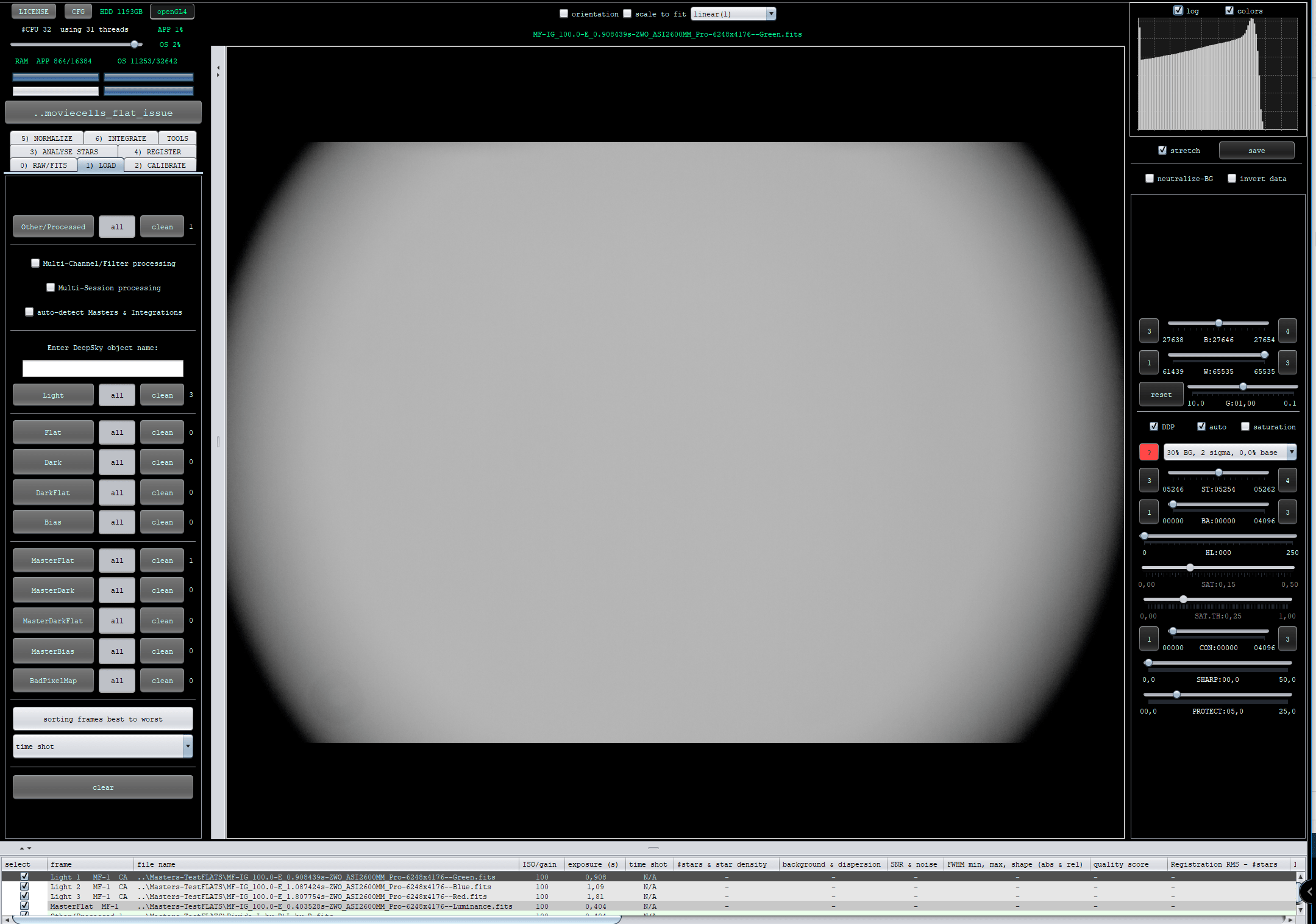 One thing does not look right but not sure is the histogram of one of the flat images below not sure what the peak is just before 36408 up to that point is look like normal light loss to the edges.