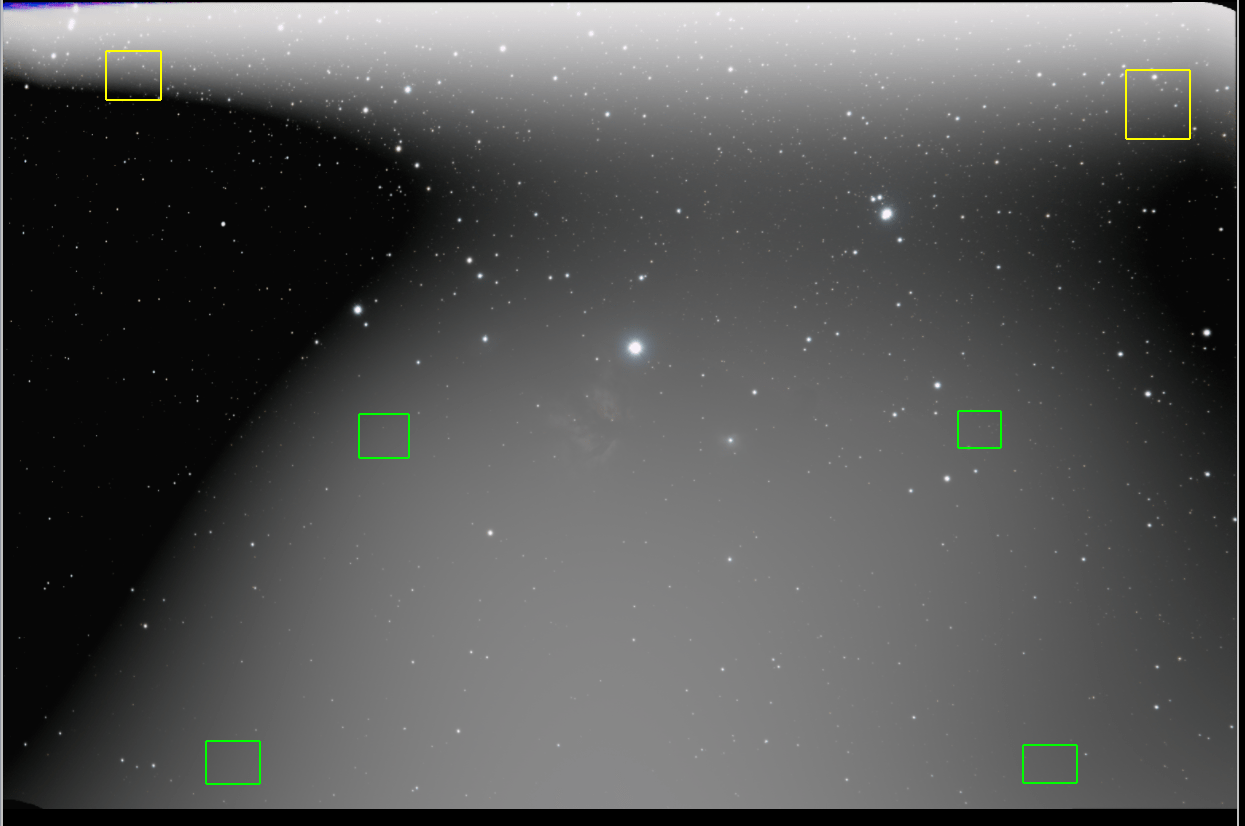 Apart from that, in APP there is a tool to reduce gradients. If you have your final image, you can go to tab 9, tools and do light pollution correction. Place a few small squares (like 3) close to the bottom, spread out. Then another 2 left and right from the object in the middle. And then 2 close to the top on the left and right. Click "calculate" and check what happens.