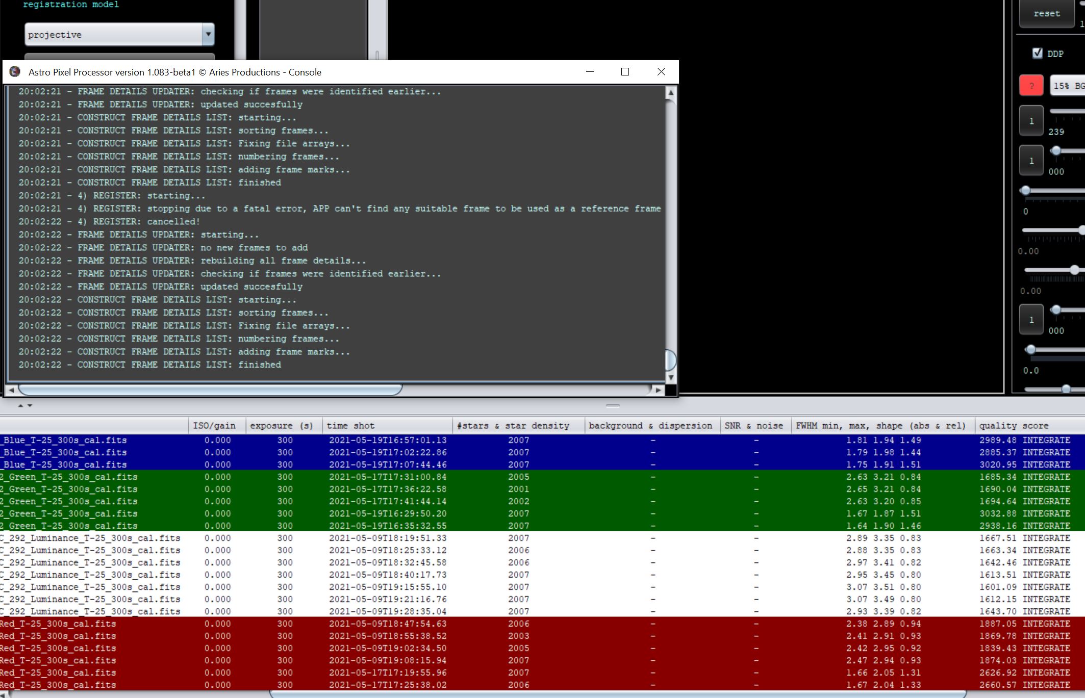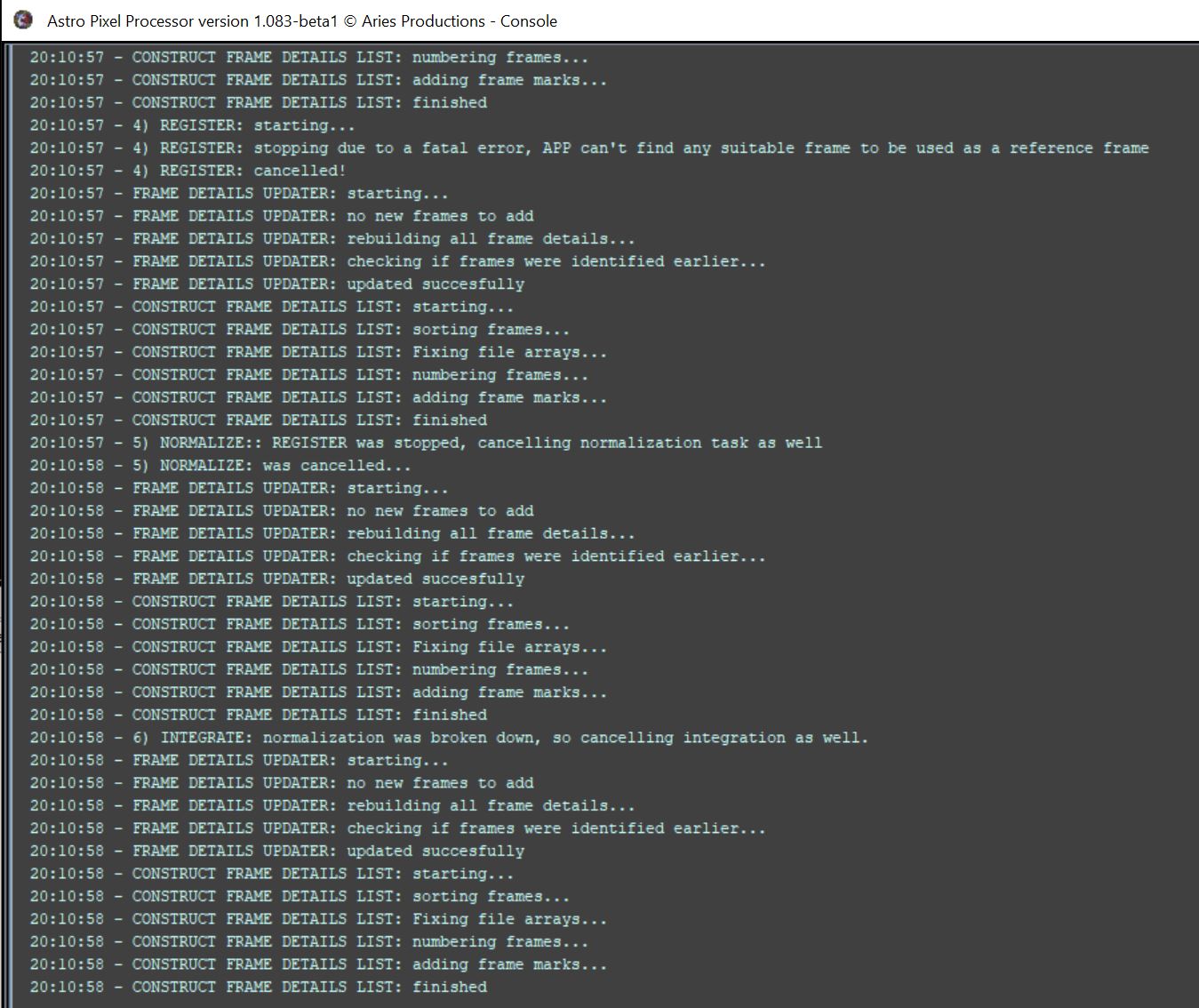 For some reason, after Analyse Stars, it seemed that APP had not auto selected a Reference Frame.Â