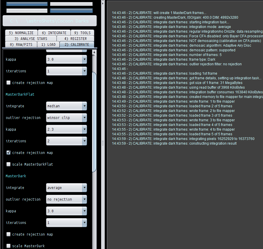 - FIXED, 2) CALIBRATE, the progress monitor showed incorrect information while creating MasterDarkFlats. Reported by @minusman. The actual MasterDarkFlat was created with the correct settings, but the progress monitor showed the settings for a MasterDark instead of a MasterDarkFlat which created the impression that the MasterDarkFlat was created with wrong settings.