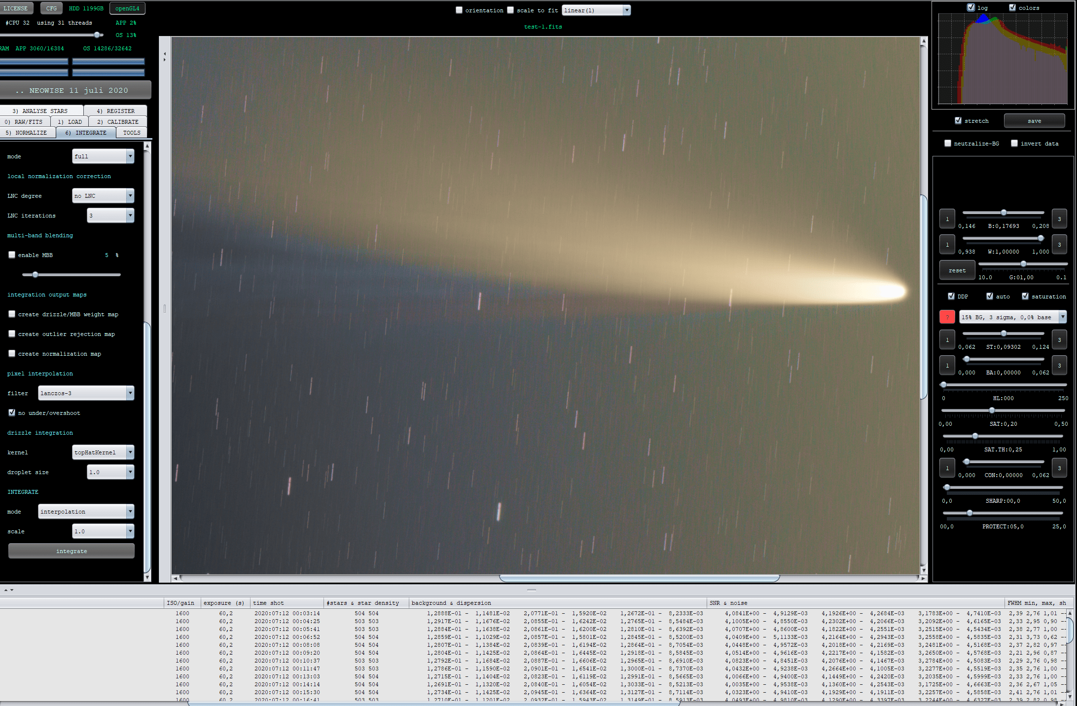 - IMPROVED, 2)-6) MANY CODE OPTIMIZATIONS, due to optimizations in the modules 2)-6) overall speed increase has been accomplished of about 15-30% depending on the data and the computer which is being used. 3)Analyse stars and 5)Normalize are a lot faster now. 4) Is faster as well, but was already fast. 6)Integrate speed has been clearly improved as well. This shows CPU and memory usage for processing of a typical dataset using 31 CPU threads and 16GB of RAM: