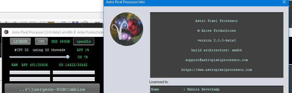 It did take a long time to have the work finished on this and it will have a major performance boost of 30-50% over 2.0.0-beta39 from calibration to integration. We extensively optimized many critical parts of APP. All has been tested to guarantee correct optimizations. Drizzle and image resampling is much faster for instance, those modules have been completely rewritten. Much less memory usage. LNC 2.0 will be released which works much better and faster than LNC in it's current state. And more, all will be added to the release notes in the coming weeks...