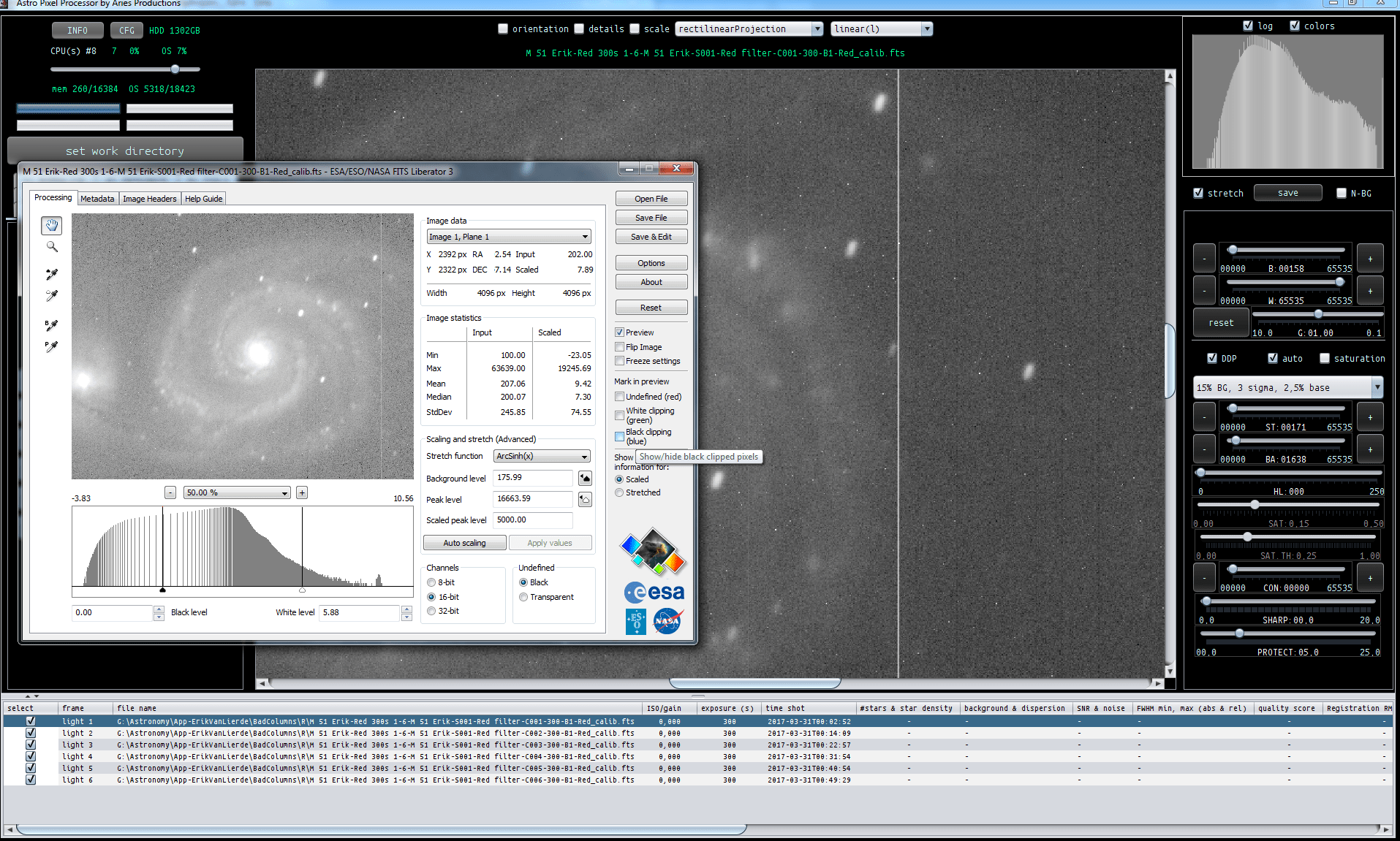 For comparison crops of M51 in APP and Fits Liberator, an esa/eso/nasa fits viewer. It shows the same columns. There are several hot columns on the sensor.