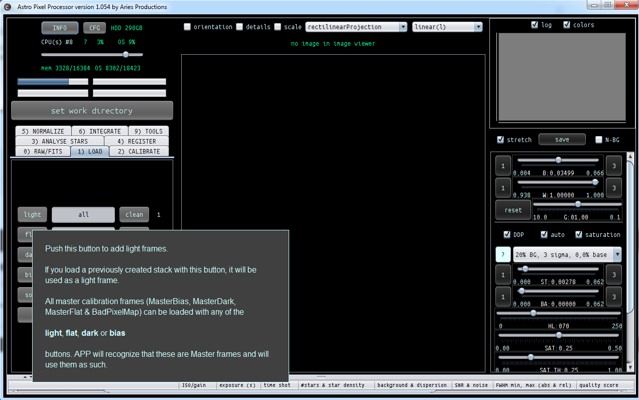 Thanks, yes you may have a valid point here, I'll see if I can add a button for loading of master calibration frames, together with the all/non togglebutton and clean button. That would make it definitely more user friendly. I agree 😉