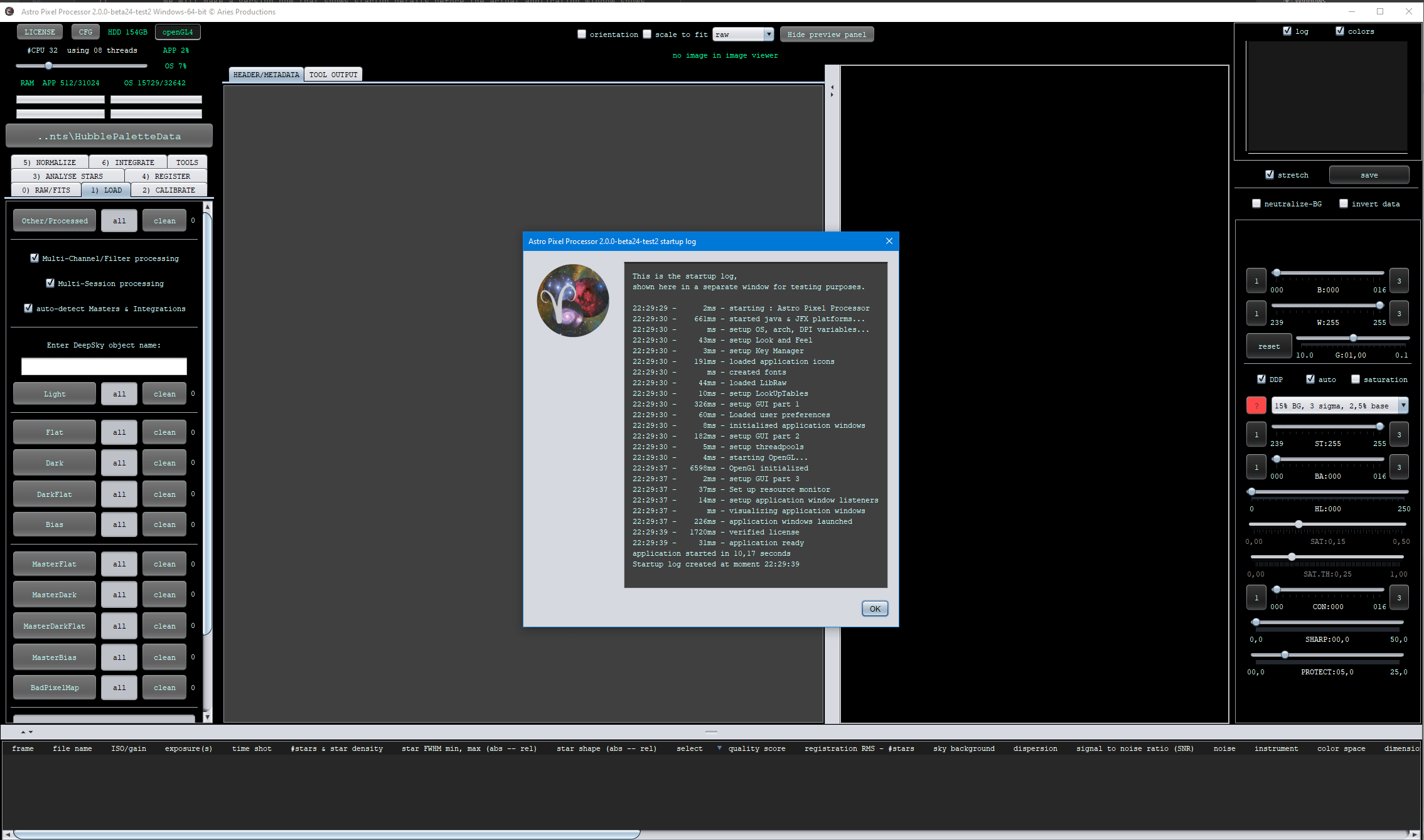 It did take a long time to have the work finished on this and it will have a major performance boost of 30-50% over 2.0.0-beta39 from calibration to integration. We extensively optimized many critical parts of APP. All has been tested to guarantee correct optimizations. Drizzle and image resampling is much faster for instance, those modules have been completely rewritten. Much less memory usage. LNC 2.0 will be released which works much better and faster than LNC in it's current state. And more, all will be added to the release notes in the coming weeks...